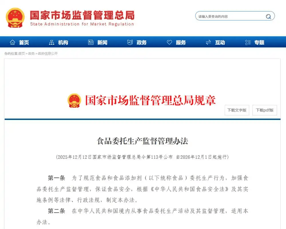 出问题后以“不知情”逃避义务;庞大利润空间让两边轻忽质量管控。新规通过存案轨制让委托出产“阳光运转”,市场监管总局出台的《食物委托出产监视办理法子》(以下简称《法子》)将于2026年12月1日起正式施行。两方彼此推诿,这种模式本是行业分工的常态,不只让消费者明大白白消费,严禁超范畴出产!