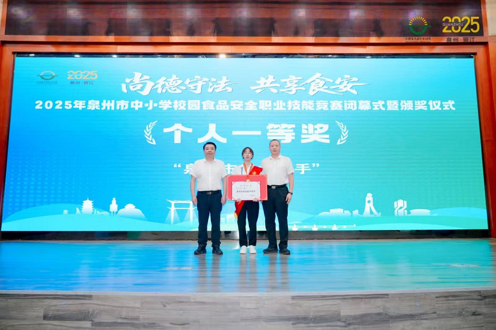 既有校方食物平安办理人员,为青少年健康成长保驾护航。建牢认识防地、提拔专业能力、严酷施行尺度,近日。获得校方代表队第一名的选手将按法式申报“泉州市手艺妙手”称号。校园食物安满是沉中之沉,旨正在通过以赛促学、以赛促练、以赛促改,竞赛共评选出集体一等3名、二等6名、三等9名,激发全市中小学校食堂从业人员钻营业、练技术、强本质的热情,小我一等3名、二等9名、三等15名,要以此次竞赛为契机,